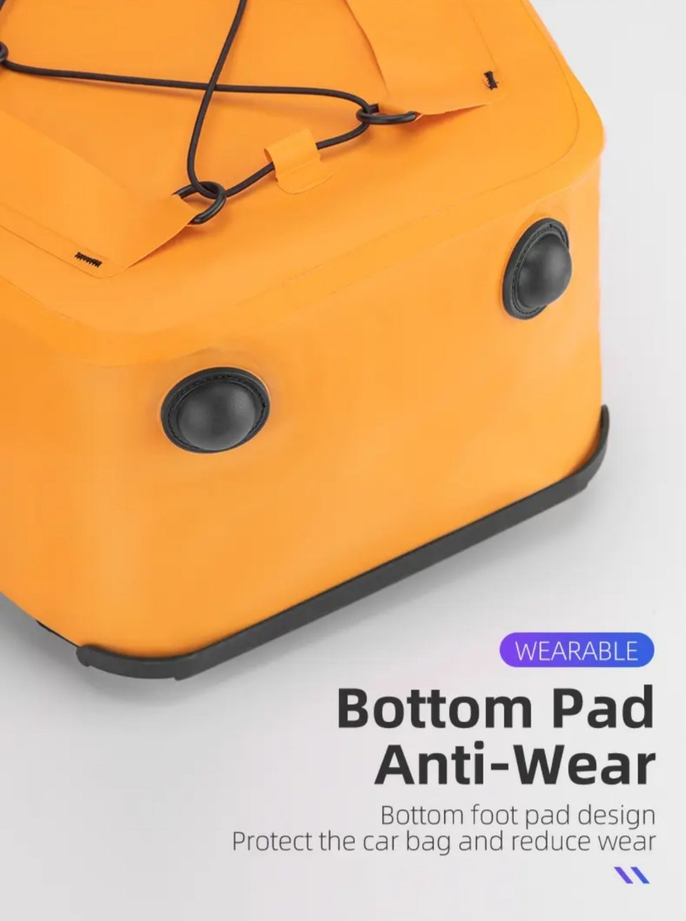 می تواند برخی از اقلام کوچک را برای دسترسی آسان ذخیره کند. مناسب برای چندین موقعیت مانند سواری در مسافت طولانی در فضای باز، رفت و آمد روزانه یا حمل و نقل مواد غذایی. سیستم اتصال سه نقطه ای: دو سگک متحرک در پشت کیف به شما کمک می کند کیف را در موقعیت مناسب با توجه به قفسه دوچرخه خود تنظیم کنید. براکت قابل چرخش 360 درجه برای محکم کردن کیف روی میلههای کناری استفاده میشود تا از جهش کیف به بیرون جلوگیری شود. می توان آن را به راحتی بدون ابزار اضافی تنظیم کرد و به یک سیستم انتشار سریع تبدیل شد