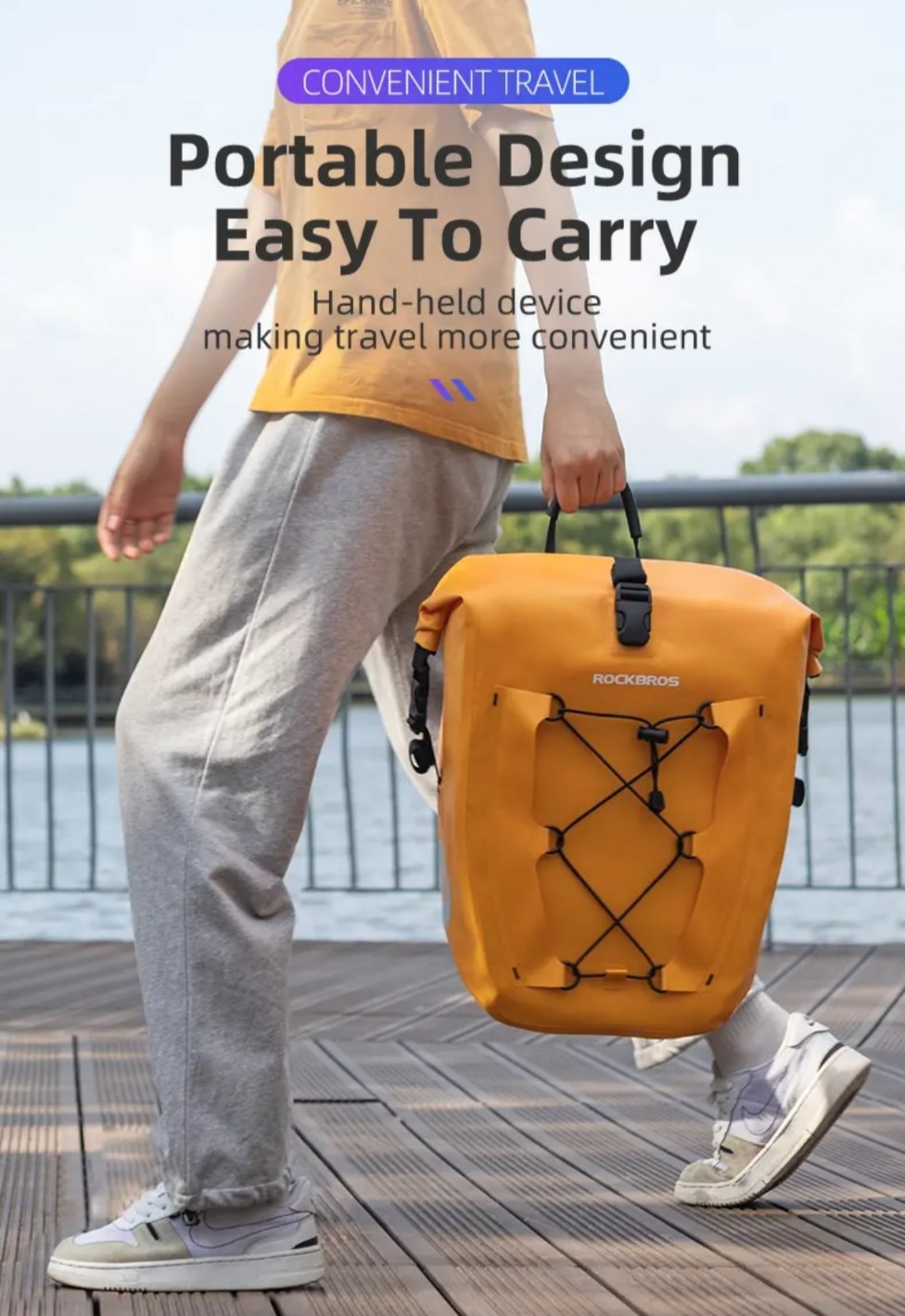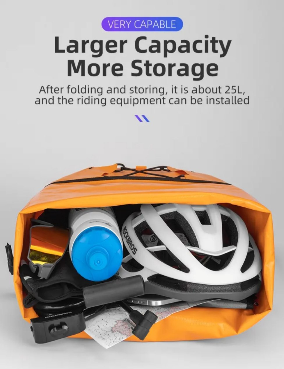 خورجین با ظرفیت بزرگ: ظرف دوچرخه ROCKBROS تقریباً حداکثر 3۲ لیتر ظرفیت دارد و به راحتی ملزومات سفر یک روزه از جمله لپتاپ، شارژر، ابزار دوچرخه و لوازم جانبی دوچرخهسواری را در خود جای میدهد که برای استفاده بهعنوان کیف مسافرتی هنگام رفتن به شرکت یا شرکت مناسب است.
