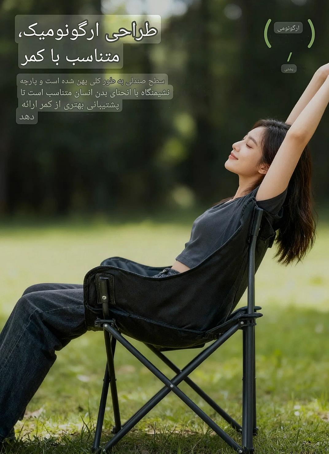 اگه دنبال یه صندلی سبک، مقاوم و فوقالعاده راحت برای کمپ، طبیعتگردی، ماهیگیری، ساحل، پیکنیک یا حتی استفاده تو حیاط و بالکن خونه هستی، این صندلی دقیقاً همونه که میخوای 😍👌