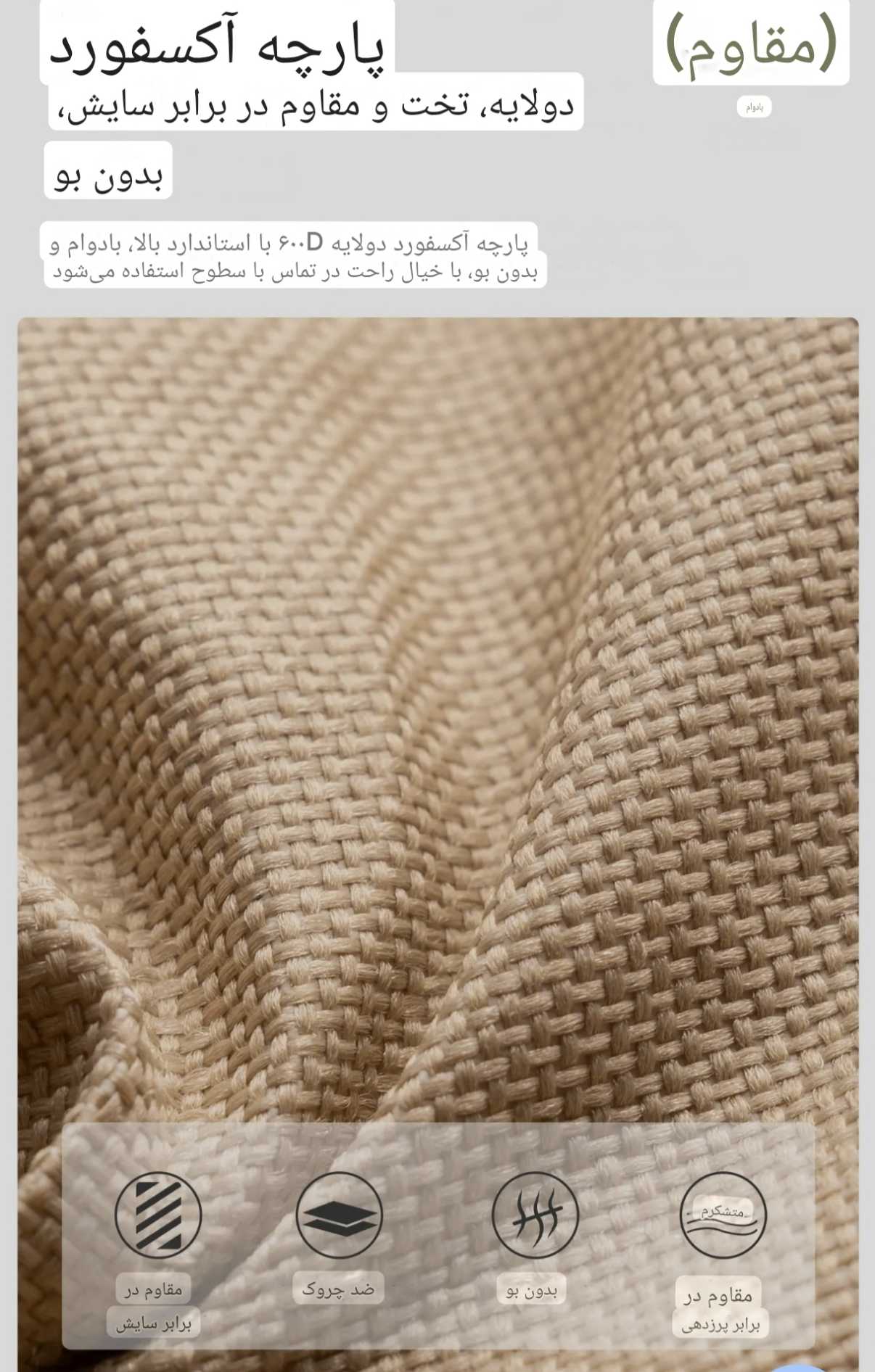 🔹 پارچه برزنت فوقالعاده مقاوم → به این راحتیا پاره، پوسیده یا خراب نمیشه 💪