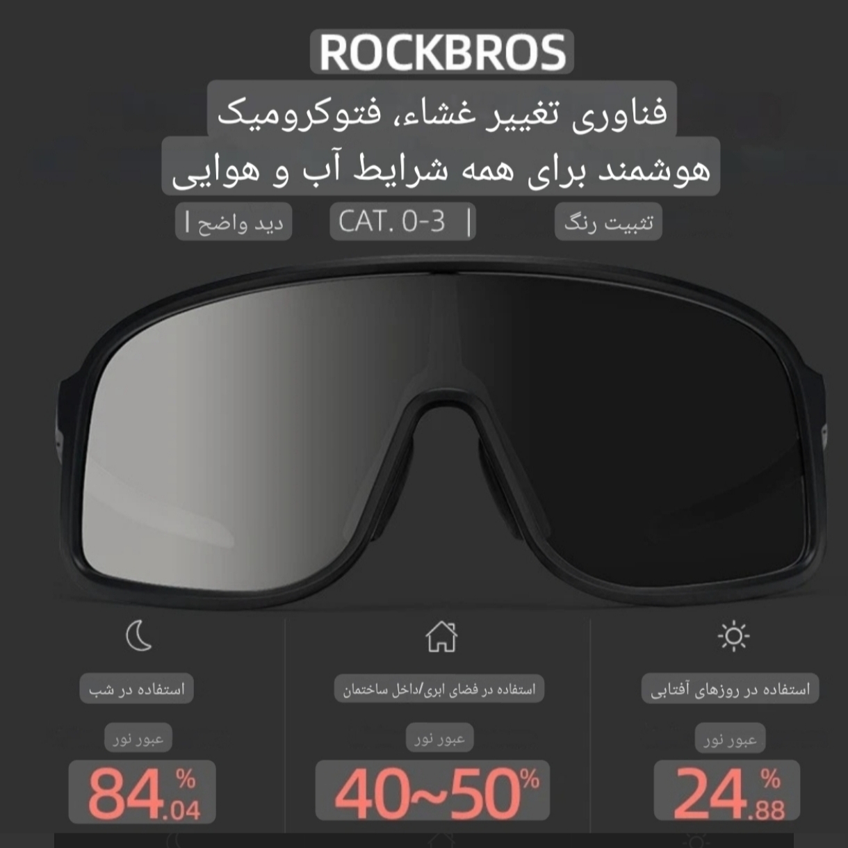 😎✨ عینک فتوکرومیک رنگی شو ROCKBROS