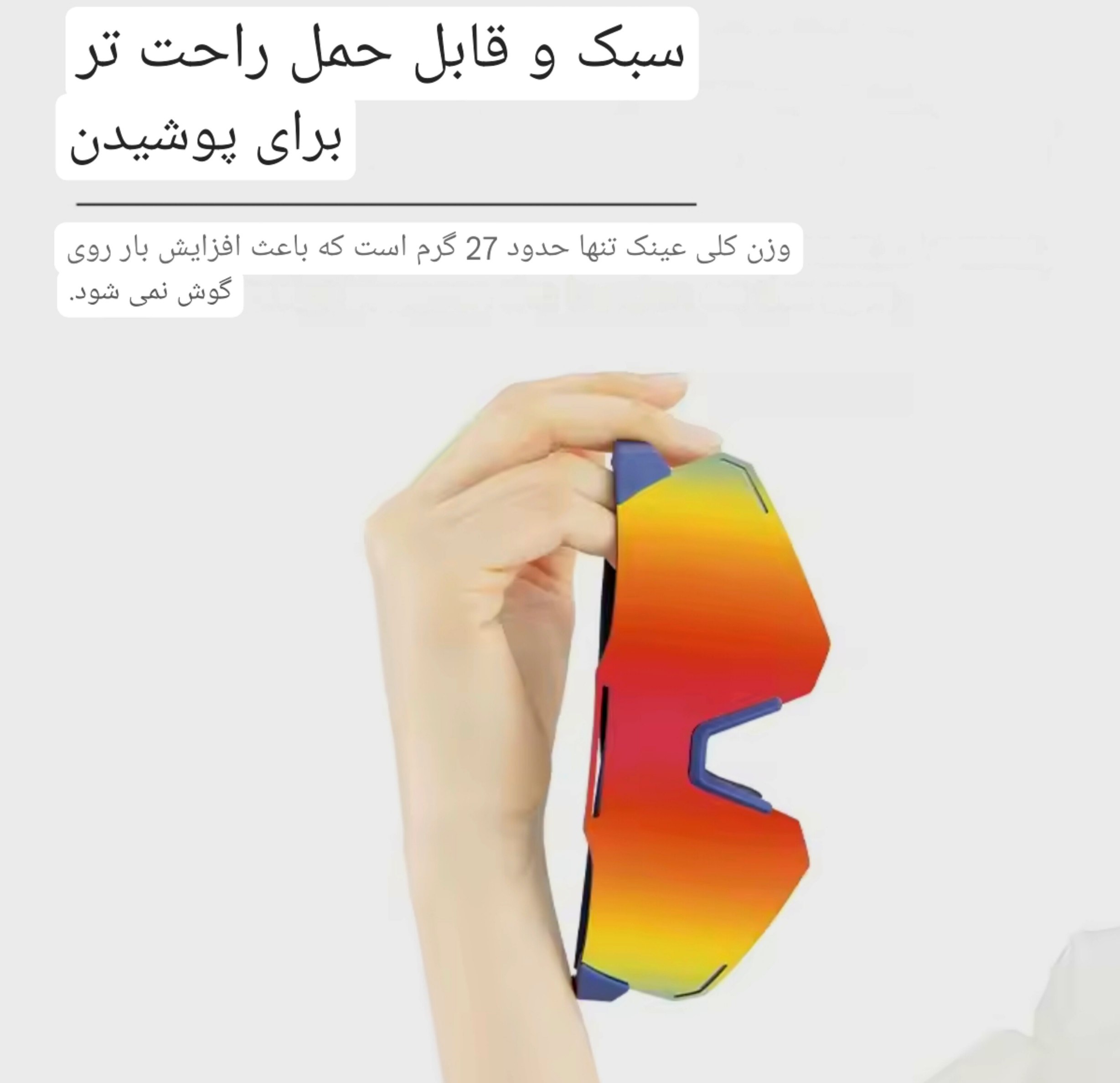 👈وزن بسیار سبک ۲۵ گرمی باعث میشه هیچ سنگینی رو حس نخواهید کرد و این یک وزن فوق العاده سبک برای یک عینک با این همه مشخصات عالیه