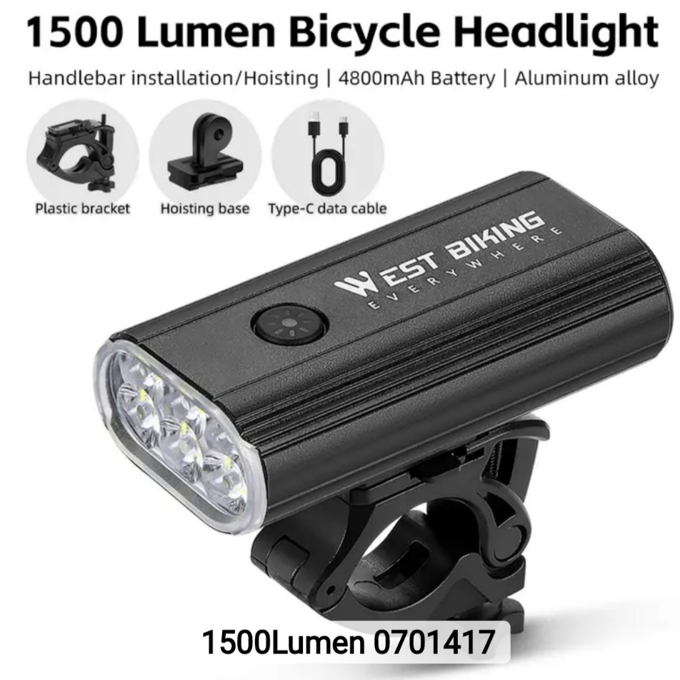چراغ جلو دوچرخه ۱۵۰۰ لومن وست بایکنیک westbiking
