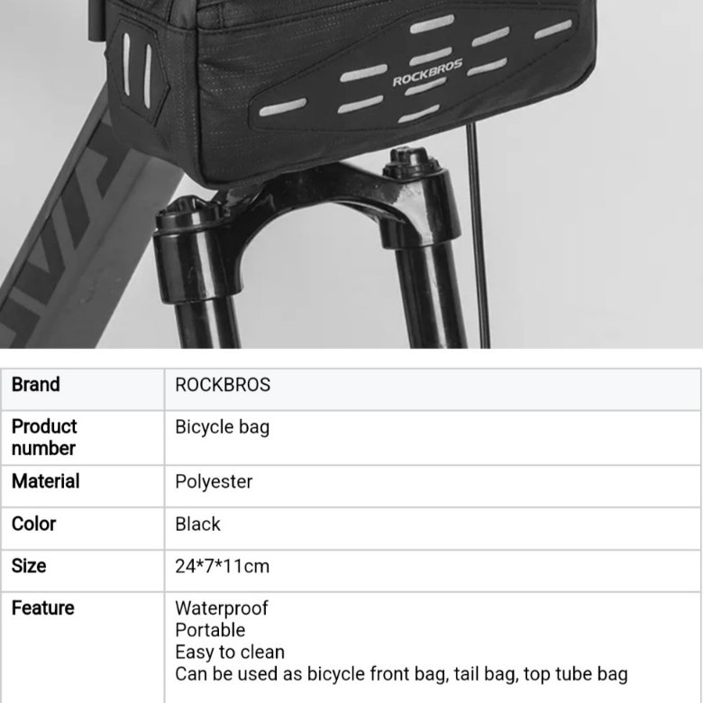 این کیف که متعلق به برند راکبراس (RockBros) است، یک کیف دوچرخه با طراحی کاربردی و جمعوجور است که معمولاً به قسمت فرمان دوچرخه متصل میشود. برخی از ویژگیهای این نوع کیفها عبارتند از: