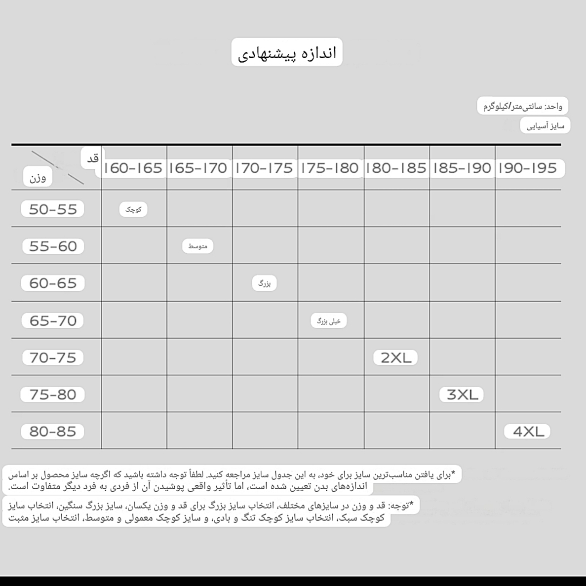 یعنی تقریباً هر اندامی داشته باشی، سایز مناسب خودتو پیدا میکنی 👕👌